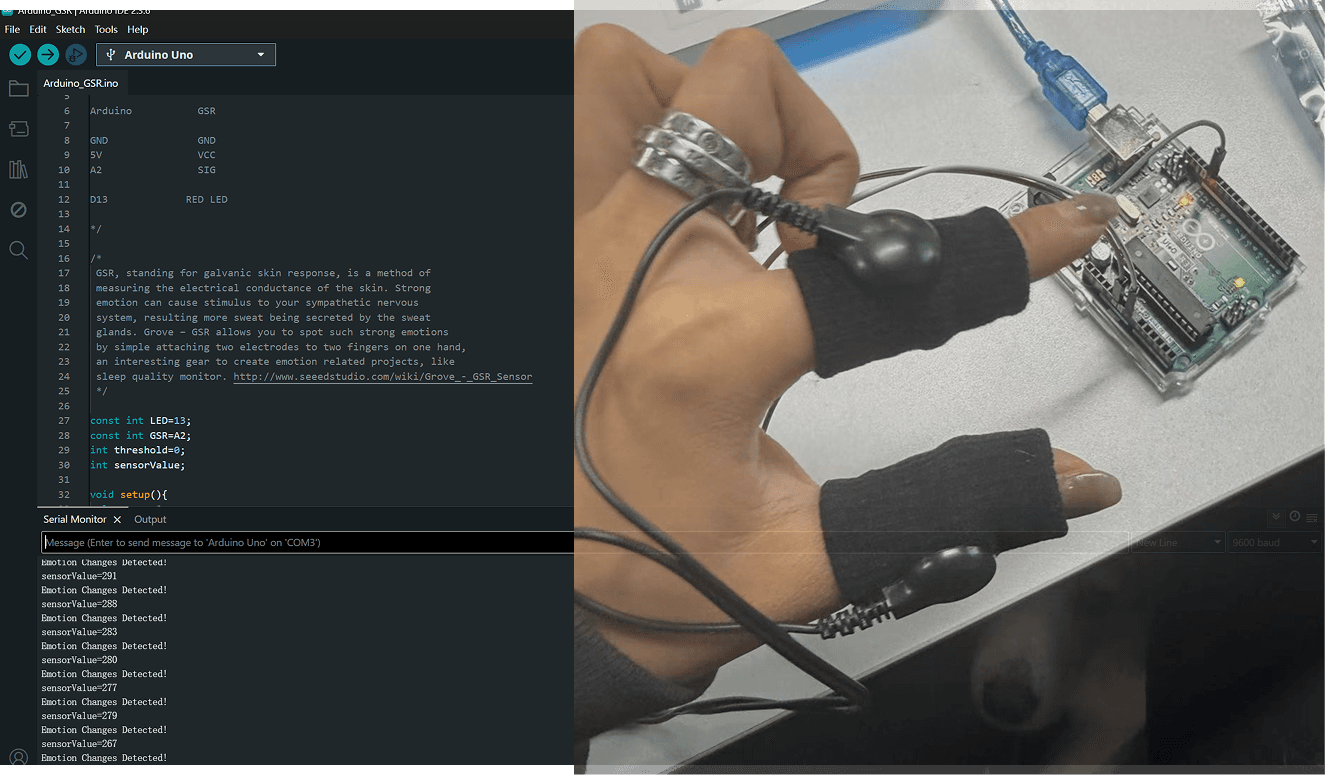 Utilizing skin conductance response (GSR) to detect users' emotional fluctuations, providing real-time physiological feedback for emotional regulation functions.