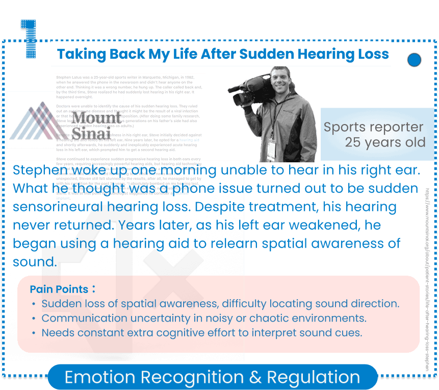From the case study, four core functions were identified for hearing support systems: Bio-Physiological Monitoring, Emotion Recognition & Regulation, Real-time Communication & Social Assistance, and Long-term Tracking & Adaptive Intelligence. These reflect user needs across different adaptation stages and guide future interactive system design.