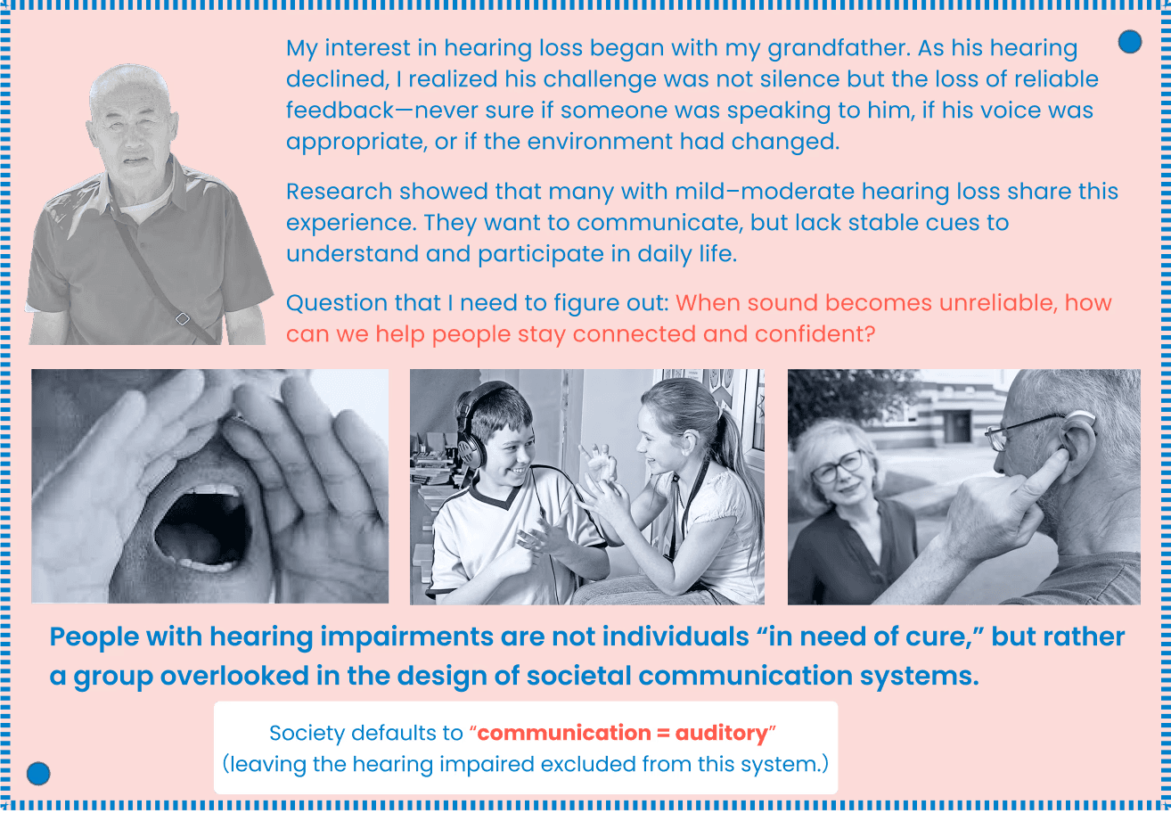 Although the hearing-impaired population keeps growing, market investment remains minimal. By 2025, the global hearing-care industry is worth only USD 10.3 billion—less than 0.2% of the healthcare economy—revealing a clear gap between real needs and societal attention. Accessibility and inclusive technologies for hearing loss remain at the margins.